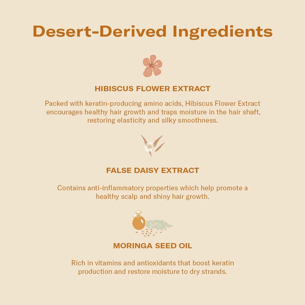 SIGNATURE SHAMPOO: Our sulfate-free shampoo gently cleanses and refreshes all hair types with a rich lather. Infused with desert-derived botanicals to strengthen and protect, this nutrient-rich formula gives your scalp a desert detox by removing buildup without stripping natural oils, leaving hair soft and shiny.